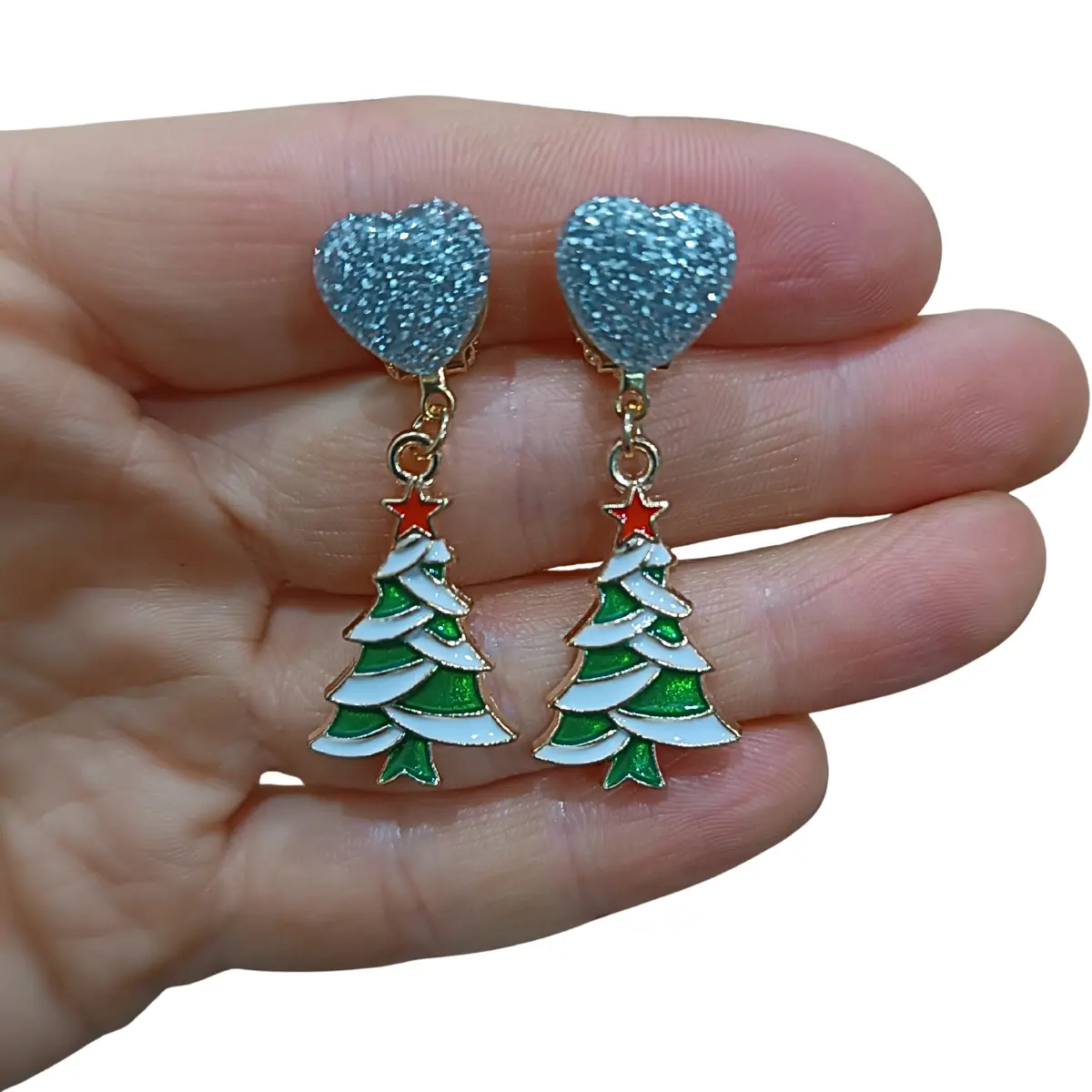 ✨Klipsy Dla Dzieci Urocze Ozdoby Bez Przekuwania Uszu ŚWIĄTECZNE CHOINKA ✨