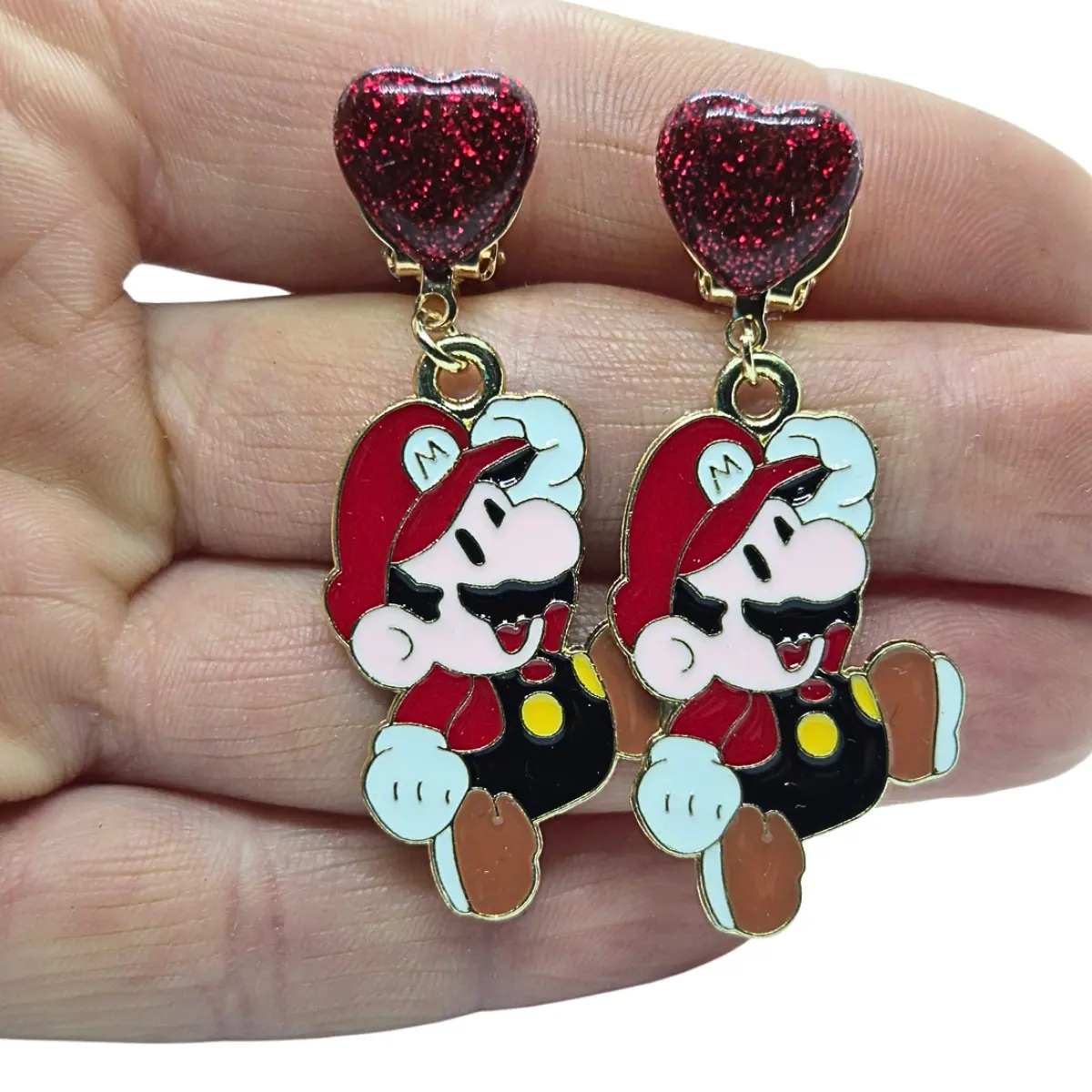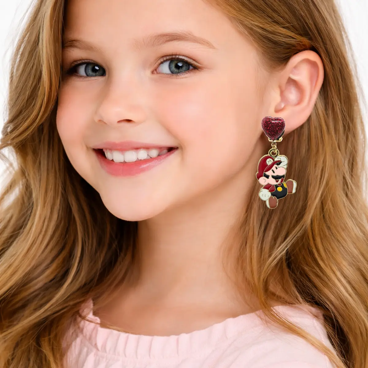 Napisz pierwszą opinię o „Kolczyki klipsy dla dziewczynki –Super Mario Bros z serduszkiem, brokatowe”