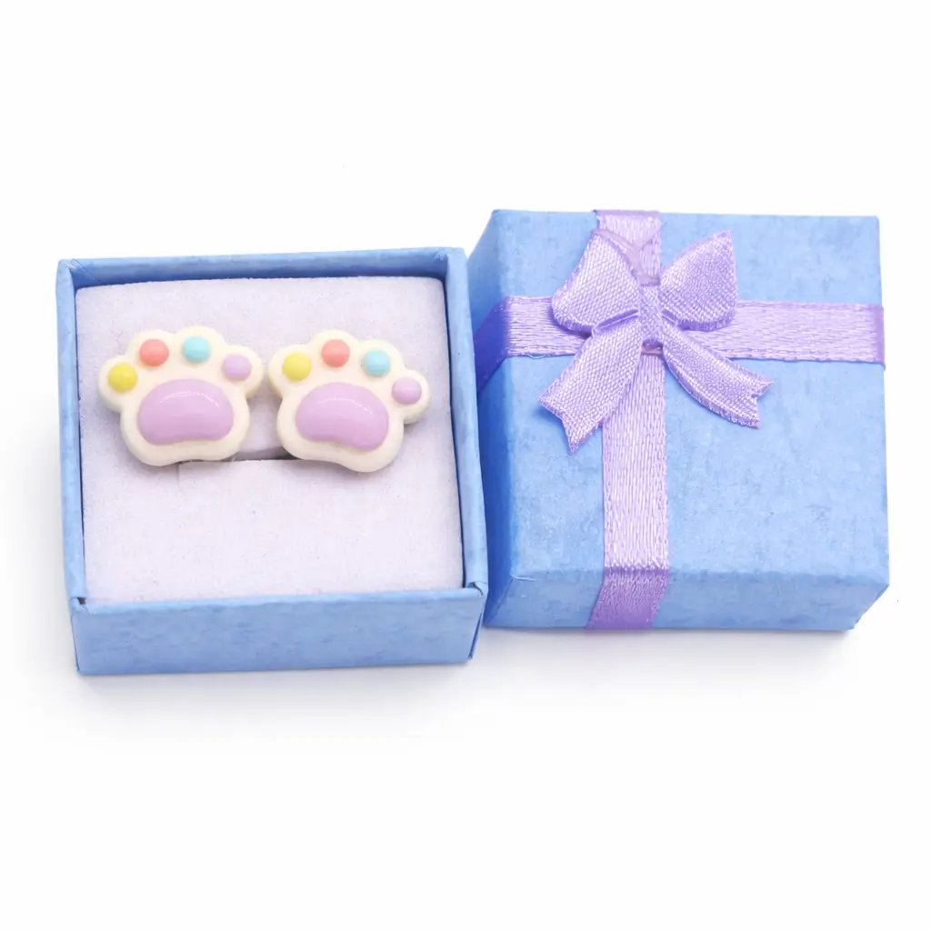 16,90 złBłyszczące klipsy dla dziewczynki bez przekłuwania w kształcie łapki kotka, pieska. W zestawie pudełko prezentowe i gumeczki zwiększające komfort noszenia.